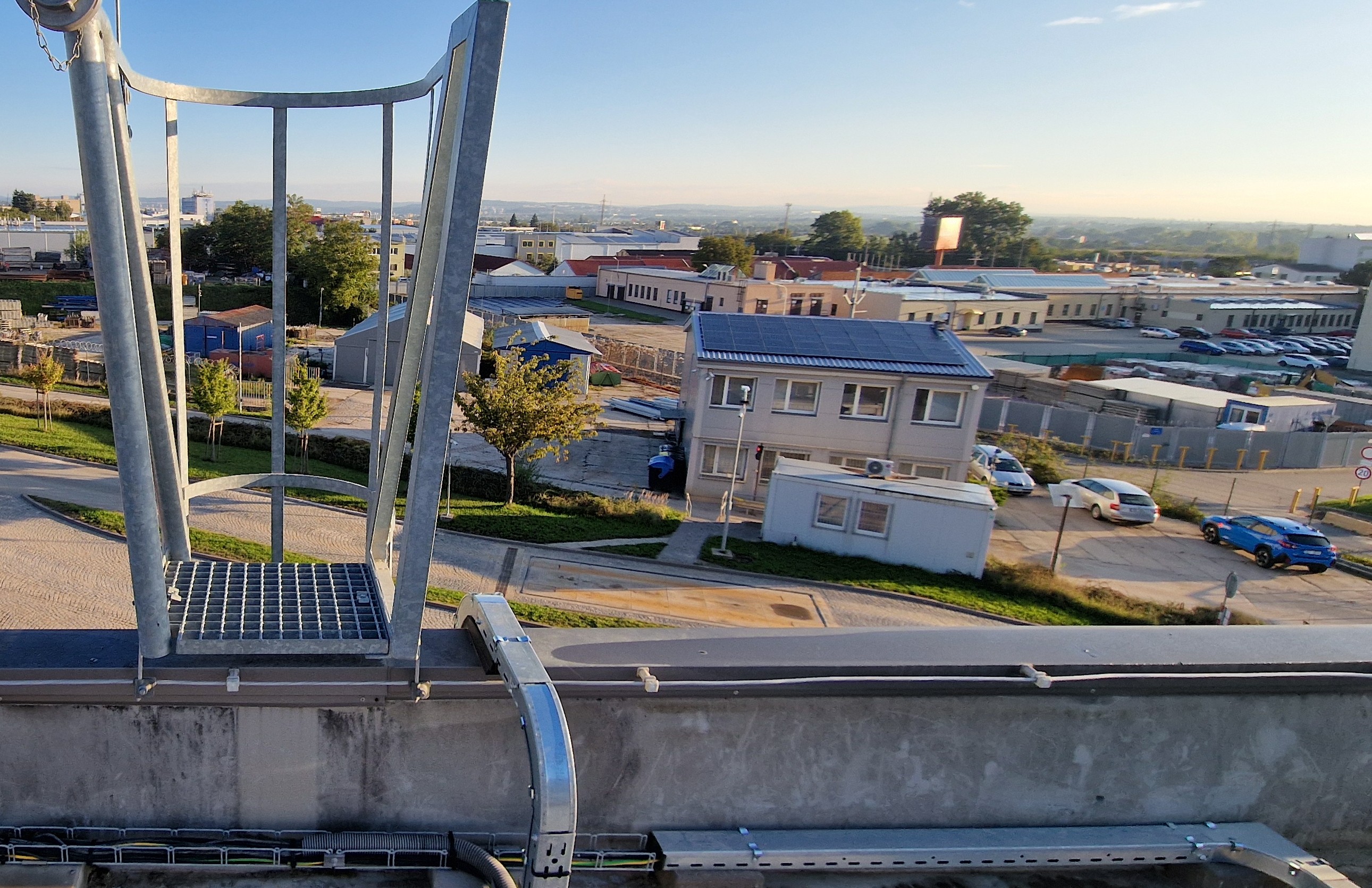 FVE je instalována na střechách objektů firmy Moravostav Brno a.s., stavební společnost, Modřice, Tyršova 310. Na střechách je osazeno 103 kusů polykrystalických panelů o celkovém výkonu 49,41 kW, použity jsou střídače Solax Power – X3-PRO-25K-G2 a X3-ULT-25K. V objektu je dále instalovaná bateriová akumulace T-BAT HS3.6 o kapacitě 95,8 kWh.